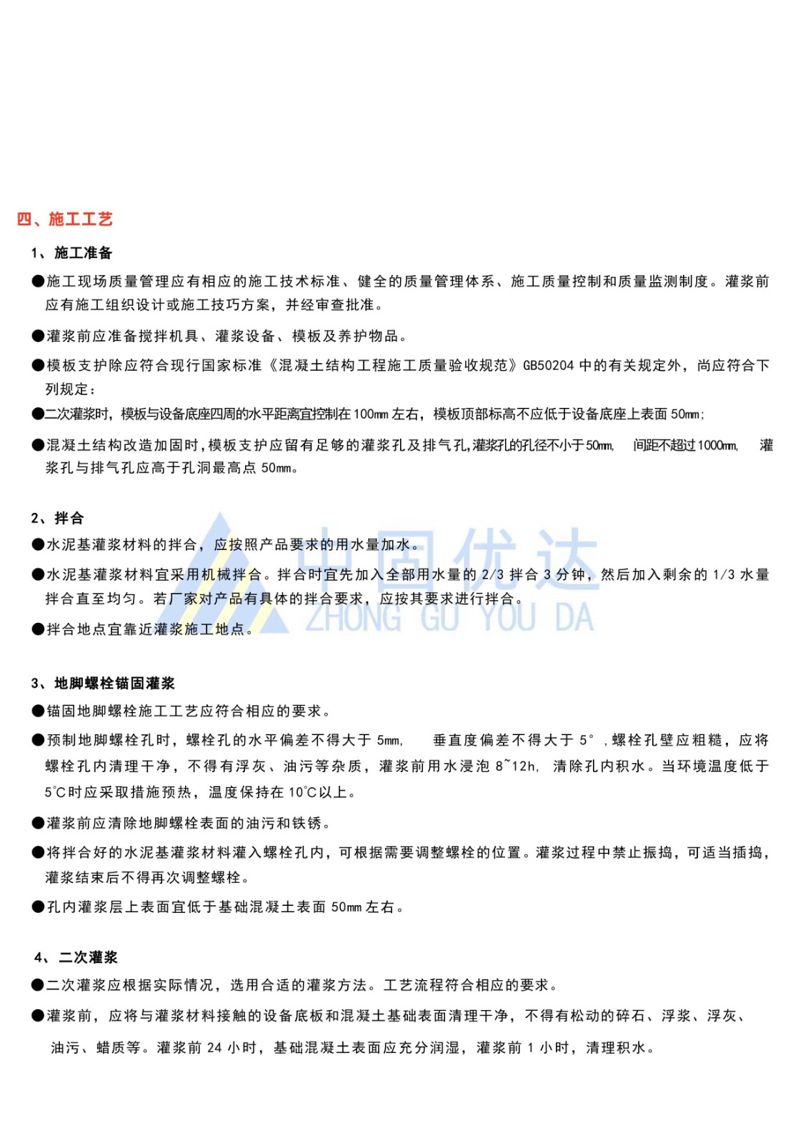 7、高强无收缩灌浆料不能与普通水泥混用,不能掺入外加剂。